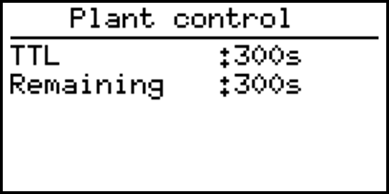 Wanneer de installatiebesturing actief is, toont de installatiebesturingspagina een actieve status met de huidige besturingswaarde. In dit voorbeeld staat het besturingsitem ingesteld op generatie naar min met een geldige tijd (TTL) van 300 seconden.