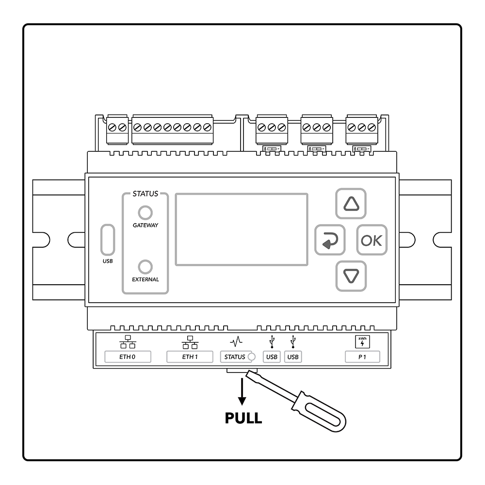 Na bevestiging zal het apparaat opnieuw opstarten en resetten. Dit duurt minder dan een minuut, waarbij er niets op het display wordt weergegeven en beide status-LED’s uit zullen zijn. Zodra dit is voltooid, wordt u gepresenteerd met de wizard Eerste Gebruik om het apparaat opnieuw in te stellen. Houd er rekening mee dat de licentie niet wordt beïnvloed door de reset en niet tijdens dit proces zal worden verwijderd.