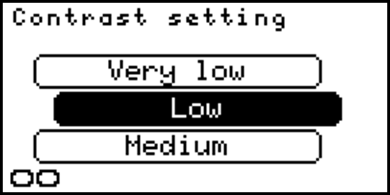 Configures the display’s contrast. By hovering over the options, the display contrast will change to the selected intensity.