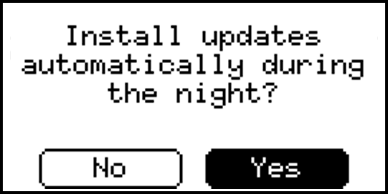 - Manual: If enabled a notification is shown when an update is available. The device will not automatically install updates.
