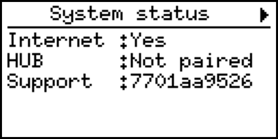 - Support, shows the support ID when support is enabled.