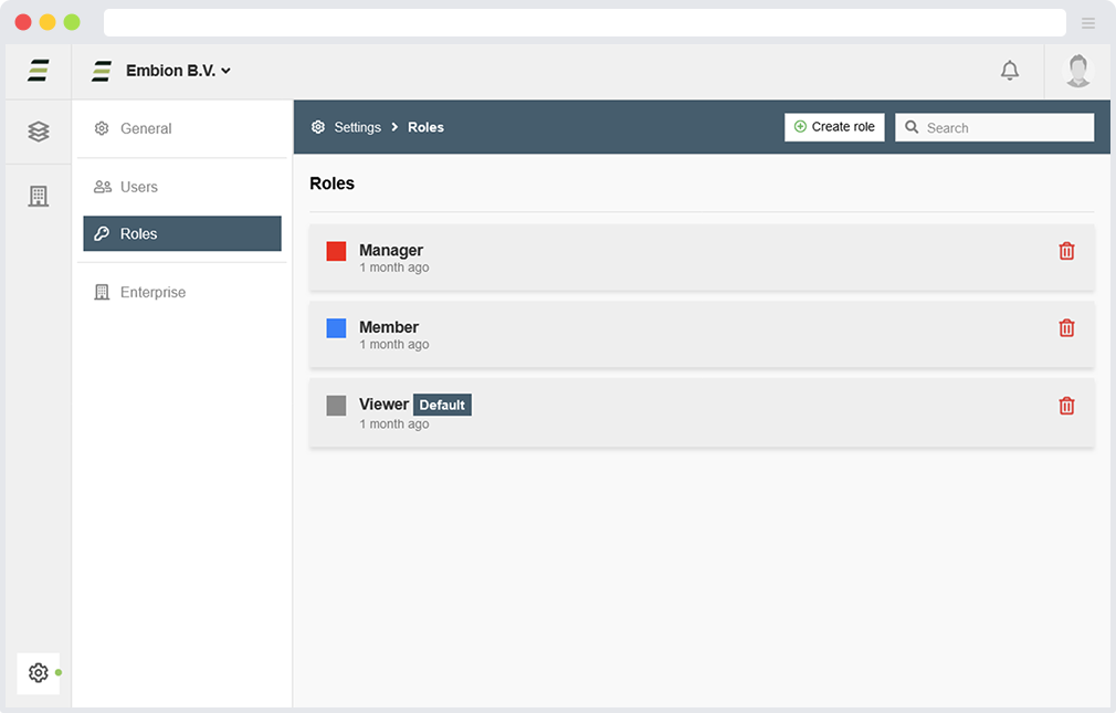 Binnen elke enterprise kunnen aangepaste rollen aan gebruikers worden toegewezen. Standaard zijn bepaalde rollen beschikbaar, maar deze kunnen worden aangepast op basis van de vereisten. Indien nodig kunnen nieuwe aangepaste rollen worden aangemaakt.